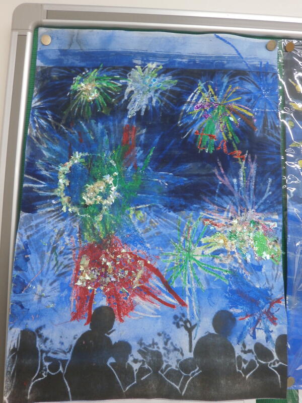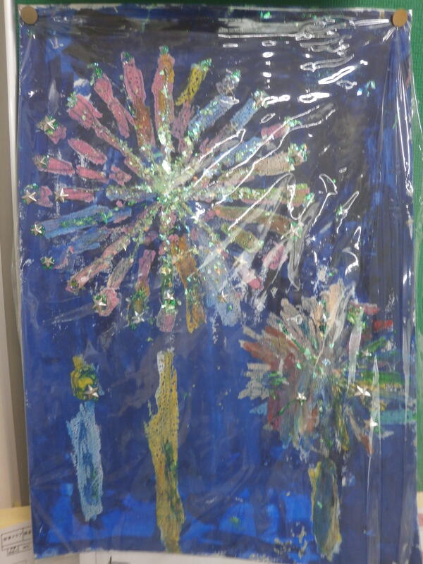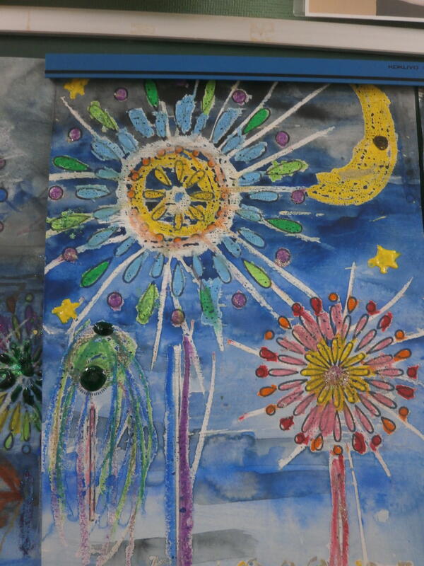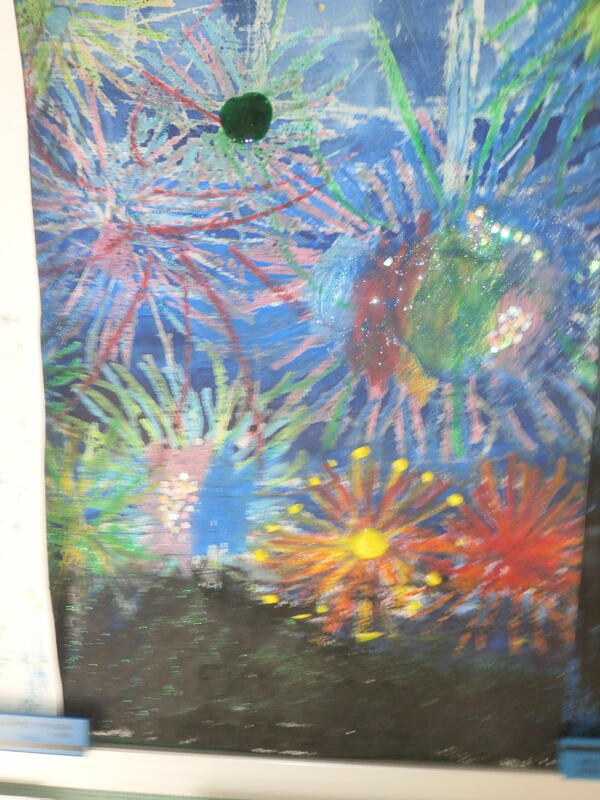 わかば学級に図工科「花火」の作品が掲示してあります。