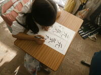 2年生はペン習字です。『元気な子』と元気な字で書いています。