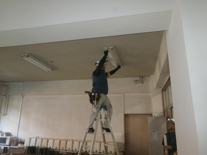 夏休みを利用して校舎内の照明を全てLEDに交換する工事がおこなわれています。