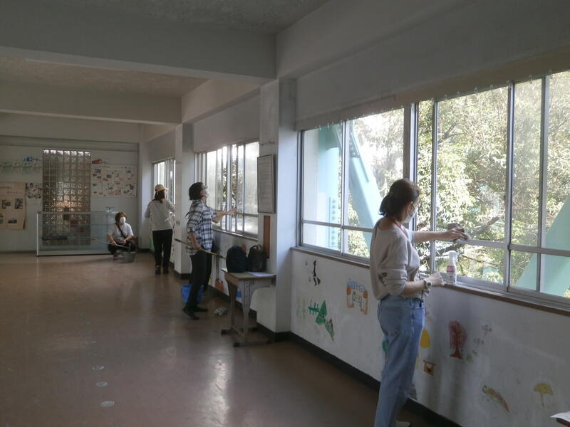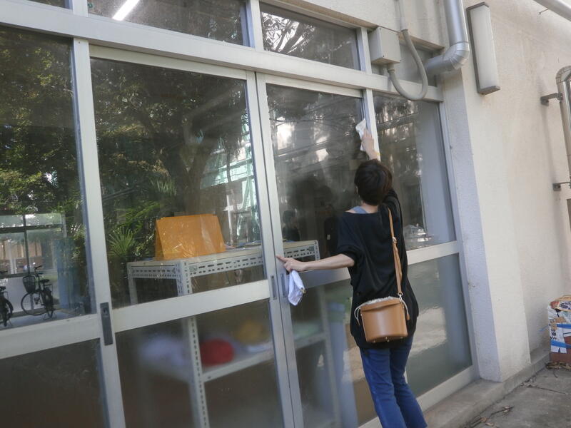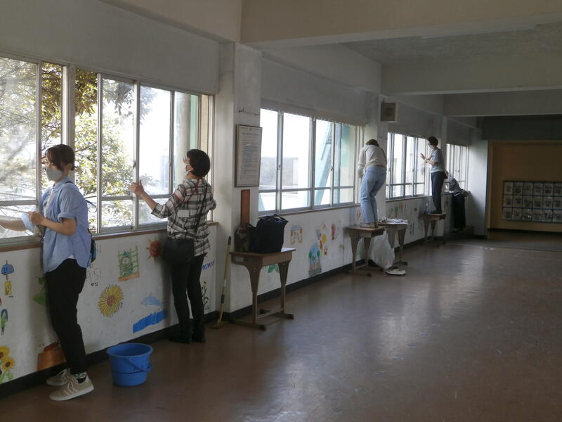 ボランティアの保護者の方々が、普段手の行き届かない窓を
