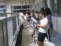 吹奏楽部ミニコンサート 投稿日時 : 2022/05/18 鶴指小学校管理者 ロング昼休みに吹奏楽部が、3階ベランダでミニコンサートを行いました。 中庭や廊下には、大勢のギャラリーが集まり、演奏に耳を傾けていました。