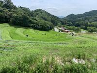 大山千枚田でクラス毎に自然観察と藍染体験を行っています。棚田ではたくさんの生き物を発見しました。