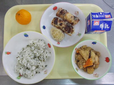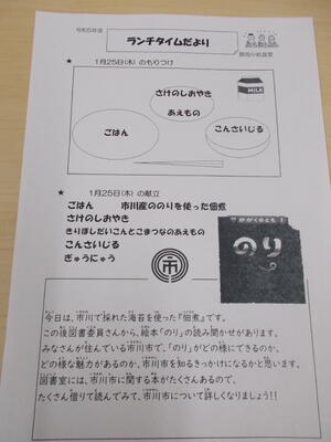 今日は、市川で採れた板のりを使た佃煮が給食にでました。