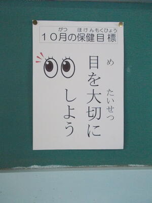 保健室の前には、目についての掲示がされています。