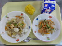 中華丼、バンサンスー、2年生のゆでとうもろこし、牛乳