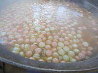 大きな釜でコトコトと煮て、おいしいブリ大根が仕上がりました。