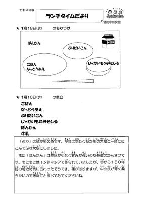 1/18(水)の給食
