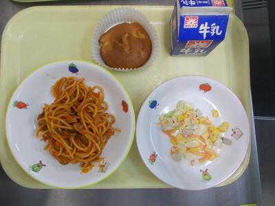 今日の給食は「ナポリタン」です。