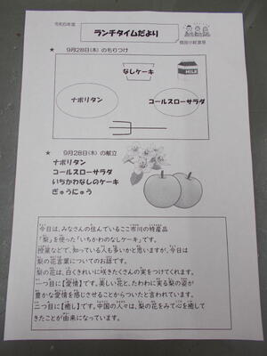 9/28(木)の給食~梨ケーキができるまで~
