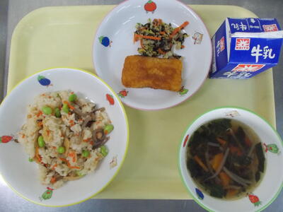 今日は、市川で採れた板のりを使た佃煮が給食にでました。