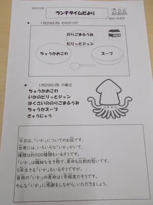今日はの「いかのピリッとジャン」は、どのクラスからも