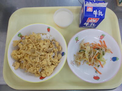 2/28(水)の給食 投稿日時 : 2024/02/28 一般 今日は、出汁が香るふわふわの「あぶたま丼」でした。 ご飯と一緒に食べるため、しょう油などの調味料の味付けがむずかしいのですが、 出汁の風味を残しつつ、ご飯がもりもりと進む味付けにしました!!
