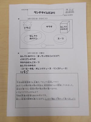 来年度も児童にとって給食の時間が、学校生活の楽しい時間の一つになるように