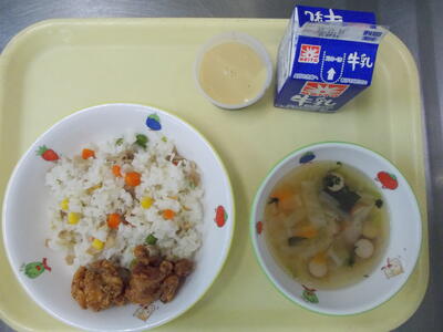 今日は児童から「イカのピリッとジャン」と「杏仁豆腐」についての