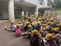 『地震です』の緊急放送の後、シャイクアウト訓練をし、引き渡しの保護者が見えた方から、訓練を実施しました。八中に兄姉がいる方は、中学校に寄ってからの引き渡しとなります。