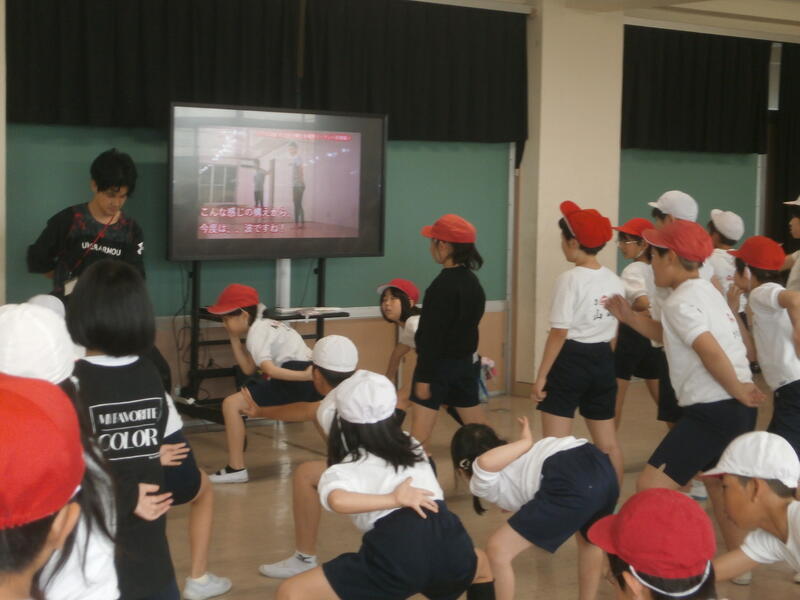 1年生の教室をのぞくと、こっそりダンスの練習をしていました。