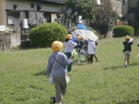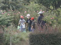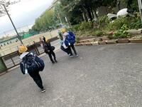 先週、雨で行けなかった1年生の2クラスが、パンダ公園に虫とりに出かけました。今日は先週と打って変わって青空が広がっていました。