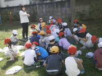 先生と楽しい遠足にするために約束の確認をしています。