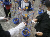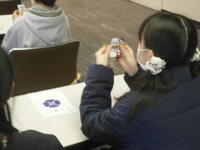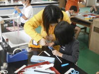 千葉大学の先生と大学生の皆さんから、ストローを使った『竹とんぼ(ストローとんぼ?)』の作り方を教わり、ものづくり体験を行いました。