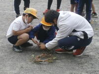 【落花生掘り】校庭の花壇で育てた落花生の収穫です。