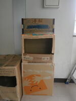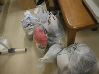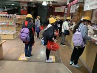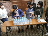 ペットボトル配給           退館式           バス乗車