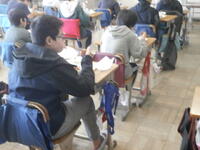 3年生がインタビューに訪れました。あいにく校長室は来客中でしたので、職員室でインタビューを受けました。『校長先生の仕事は?』『子どもが下校した後は何をしていますか?』などの質問をし、メモを取るのが大変そうでした。礼儀正しい態度で取材することができていました。