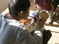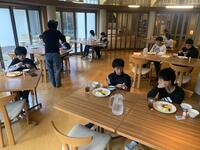 おはようございます。朝から元気いっぱいの子ども達です。朝食をすませて、この後は出発の準備です。