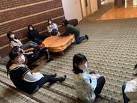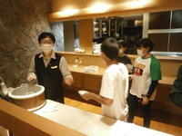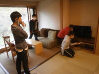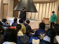 ホテルの方から館内での過ごし方について話をしていただきました。この後、それぞれの部屋に移動して、荷物の整理や休憩をします。