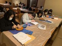 まずは日光彫りの講師の方にご挨拶をしています。