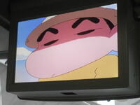 出発式            バス乗車        バス内(1号車は『クレヨンしんちゃん』)