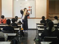講師の先生にみんなで挨拶をしています。