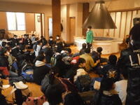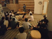 予定より早くホテルに到着しました。入館式で実行委員や先生からの話を聞いています。