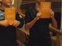 お土産タイム(3,000円分のクーポン券を先生から受け取って)
