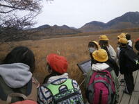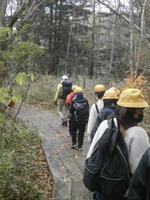 午前中の活動は戦場ヶ原ガイドハイキングを予定通り行いました。日光自然博物館の自然解説員の方に解説をしていただきながら湯滝から赤沼までのコースを歩きました。