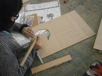 電動糸の子を使って、木材を切り、思いおもいの物を製作しています。実用的なものからインテリアまで、アイデアあふれる作品ができそうです。