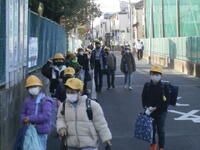 荷物をいっぱい持って、子どもたちが元気に登校してきました。
