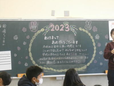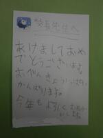朝、校門で2年生の女の子から年賀状を手渡されました。ありがとうございます。
