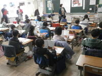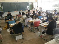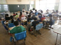 1年生と4年生で国語科の研究授業を行いました。たくさんの先生方に囲まれ、多少緊張しながら子どもたちは頑張っていました。