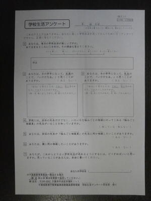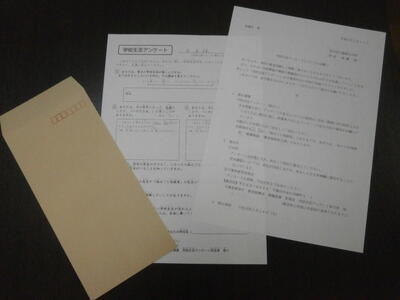 本日、アンケート用紙と回収用の封筒を配布しました。今回のアンケートは千葉県全部の小学校で実施するものでご家庭でお子様と一緒に回答をお願いします。回収方法は、封筒に入れ担任の先生に提出するか、直接、県教育委員会に郵送(郵送料は各家庭の負担になります)することもできます。1月16日(月)までの提出にご協力をお願いします。