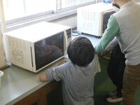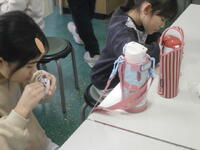 理科室で『水のあたたまり方』の実験です。真剣なまなざしで実験結果を観察しています。
