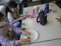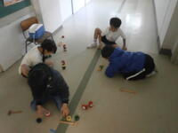 けん玉、ヨーヨー、だるま落としなど、昔の遊びに触れ、遊び方や気づいたことをレポートにまとめていきます。なかには、けん玉を器用に扱い披露してくれた子もいました。