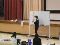 わかば学級で講師の先生を迎え『これは何か説明しよう』の研究授業を行いました。たくさんの先生が見に来ましたが、子どもたちはいつも通り元気に授業に取り組んでいました。