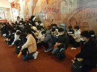 道路状況もよく、予定よりも早く到着しました。クラス毎に集合写真を撮影し、見学を開始します。