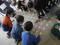 いよいよ百人一首大会も大詰めで決勝戦と3位決定戦が行われました。高学年の決勝戦は、6年1組のチーム同士の対戦で本日、欠席者もいたため延期となりましたが、3位決定戦と低学年の決勝戦、3位決定戦で熱戦が繰り広げられました。