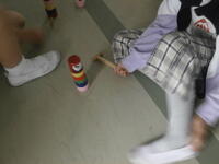 けん玉、ヨーヨー、だるま落とし・・・ いろいろな昔遊びに挑戦中です。うまくできたかな?