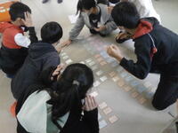 いよいよ百人一首大会も大詰めで決勝戦と3位決定戦が行われました。高学年の決勝戦は、6年1組のチーム同士の対戦で本日、欠席者もいたため延期となりましたが、3位決定戦と低学年の決勝戦、3位決定戦で熱戦が繰り広げられました。