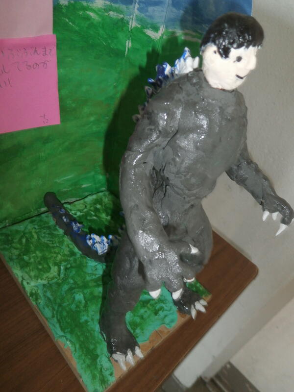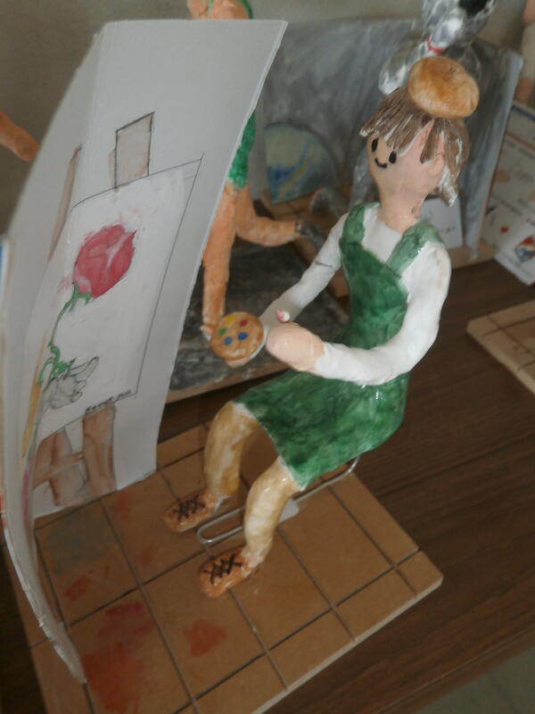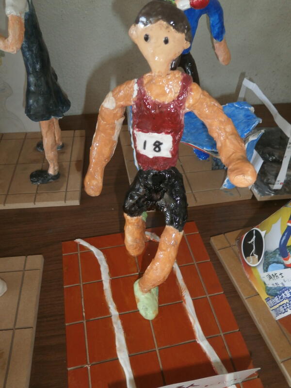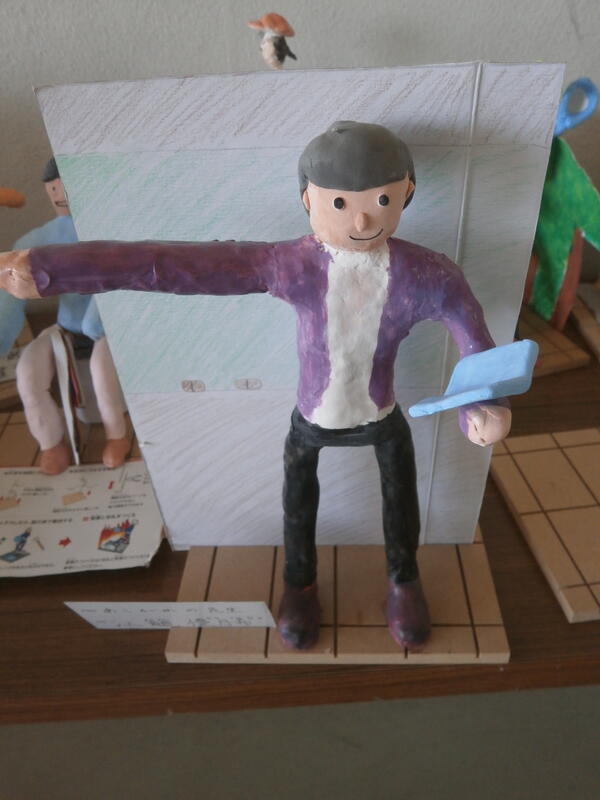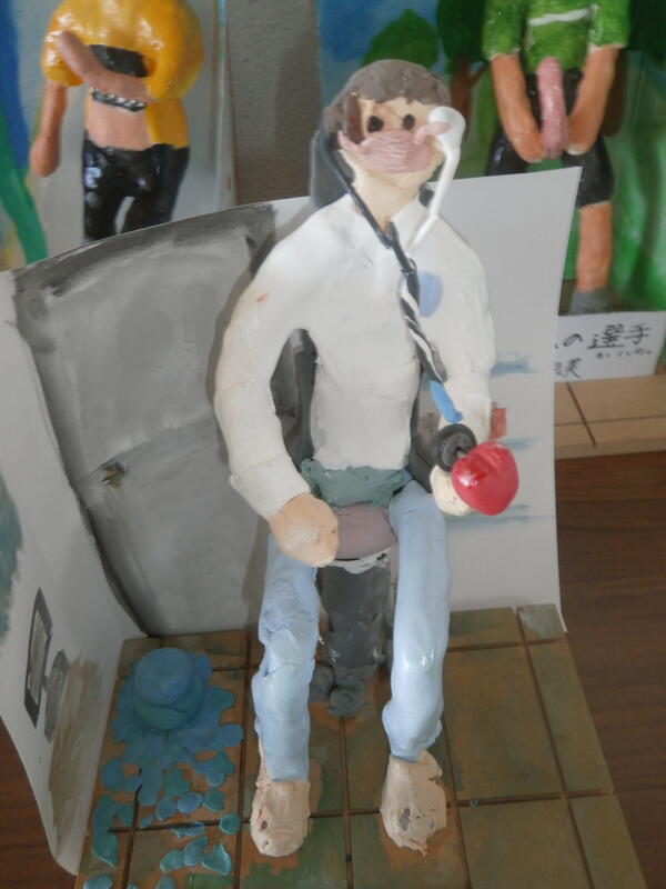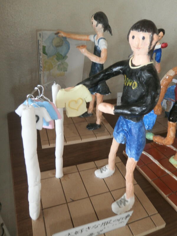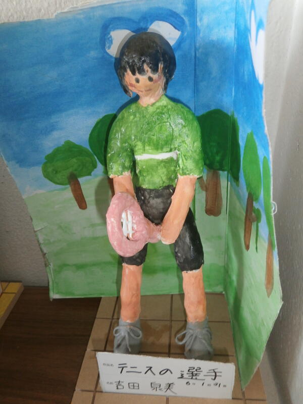 6年生の廊下に図工科「未来のわたし」の作品が展示されていました。
