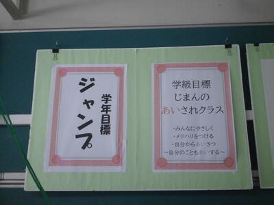 「ものより思い出 あきらめない 殻を突き破れ おいしい笑顔」の学級はどこでしょう?