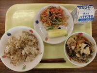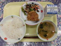 ごはん・豆・豆ハンバーグ・五目きんぴら・すまし汁・牛乳