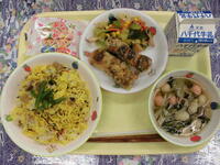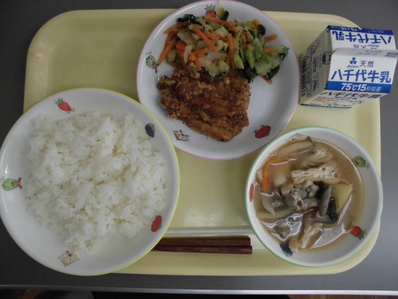 ごはん・鶏の竜田揚げ・ひじきサラダ・さつま味噌汁・牛乳